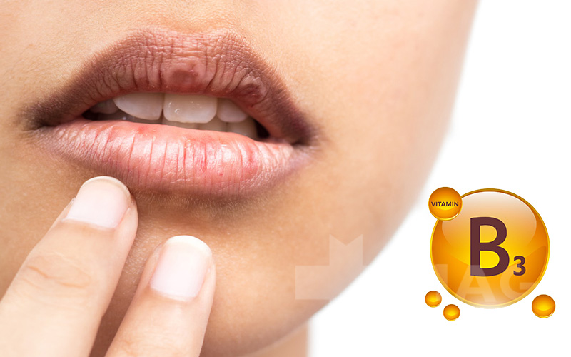 بدون نیاسین یا ویتامین B3 لب‌ها حالت ترک خورده پیدا می‌کنند و دهان متورم و قرمز ممکن است به نظر برسد. کمبود این ویتامین همچنین می‌تواند درماتیت را به دنبال داشته باشد. با خوردن گوشت، ماهی، مرغ، غلات کامل، لبنیات و سبزیجات برگ سبز می‌توانید مقادیر مناسبی از این ویتامین را به بدن خود برسانید.