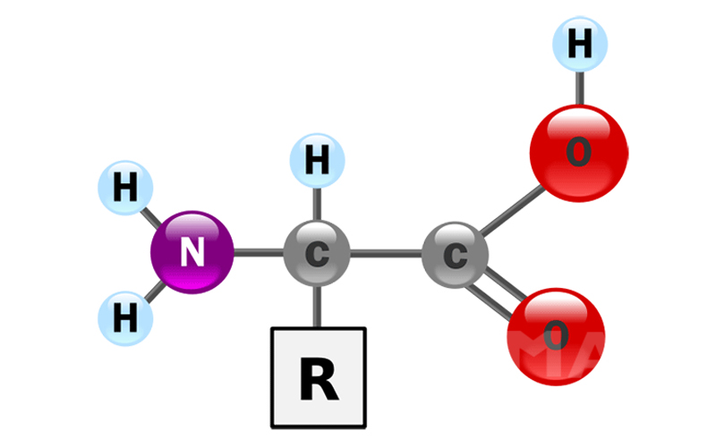 پروتئین از اسیدهای آمینه تشکیل شده است. 20 اسید آمینهای که بدن برای ساخت پروتئین از آنها استفاده میکند عبارتاند از: