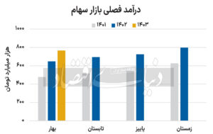 علی قاسمی/ عباس بیات : با پایان انتشار گزارشهای خردادماه صنایع بورسی، درآمد ۳۸۲نماد اصلی بورسی و فرابورسی در سومین ماه از سال به ۲۷۵همت رسید. بهرغم آنکه میزان درآمد ثبتشده، افت ۴درصدی را نسبت به اردیبهشت نشان میدهد، اما فروش این شرکتها نسبت به خردادماه سال قبل، رشد۱۰درصدی را تجربه کرده است. ضمن آنکه دلار نیما در خردادماه سالجاری حدود ۴۲هزار و ۳۰۰تومان بوده؛ در حالی که این شاخص دلاری، نسبت به خرداد سال قبل که به طور متوسط در محدوده ۳۸هزار و ۱۰۰تومان قرار داشته، با افزایش ۱۰درصدی همراه بوده است. از اینرو، درآمد دلاری خردادماه امسال نسبت به سال گذشته تقریبا بدون تغییر مانده است. همچنین صنایع در بهار ۱۴۰۳، حدود ۷۶۷همت درآمد داشتند که نسبت به بهار سال قبل، رشد ۱۸درصدی و نسبت به زمستان کاهش ۴درصدی را تجربه میکنند. این درحالی است که درآمد دلاری صنایع در بهار نسبت مدت مشابه سال قبل، رشد ۸درصدی داشته است.