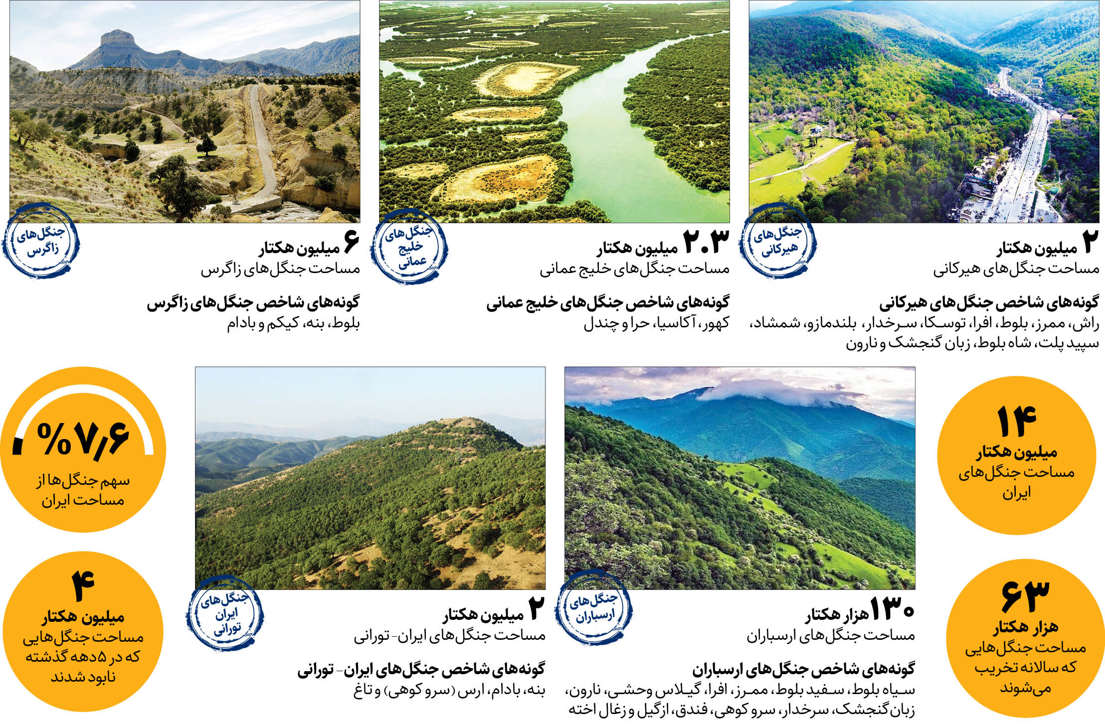 ضمن اینکه از نظر تأثیرات دمایی نباید از نقش عرصههای جنگلی غافل شد. طبق اعلام کارشناسان محیطزیست سالانهٔ ۶۳ هزار هکتار از جنگلهای ایران نابود میشود و درصورت تداوم چنین روندی تا ۵۰ سال آینده همه جنگلها را از دست خواهیم داد. دلیل اصلی نابودی جنگلها طمع انسانها و نه نیازشان است.