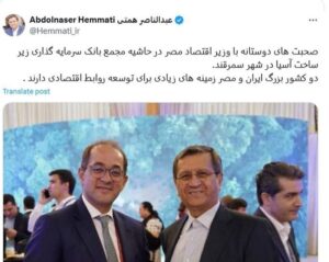 جمهوریت –در حاشیه مجمع سرمایه گذاری زیرساخت آسیا در سمرقند وزرای اقتصاد ایران و مصر دیدار کردند.
