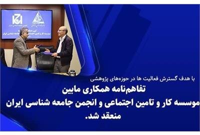 مؤسسه کار و تأمین اجتماعی و انجمن جامعهشناسی ایران با هدف تقویت فعالیتهای پژوهشی در زمینههای تعاون، کار و رفاه اجتماعی تفاهمنامه همکاری مشترک امضا کردند .