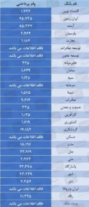بانک مرکزی ریز اطلاعات تسهیلات پرداختی به اشخاص مرتبط به بانک‌های اقتصاد نوین، دی، تجارت، خاورمیانه، شهر، کارآفرین، کشاورزی، ایران‌زمین، پارسیان،‌ پاسارگاد، رفاه کارگران، آینده،سینا، سامان، گردشگری، ملت، مؤسسه اعتباری ملل، ملی، صادرات،صنعت و معدن سپه و مسکن را منتشر کرده است.