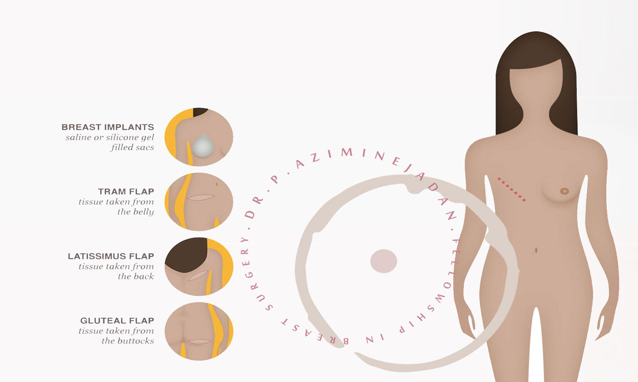 - بافت اتولوگ (از بدن خود بیمار): استفاده از بافت شکم، پشت یا باسن برای بازسازی سینه.
